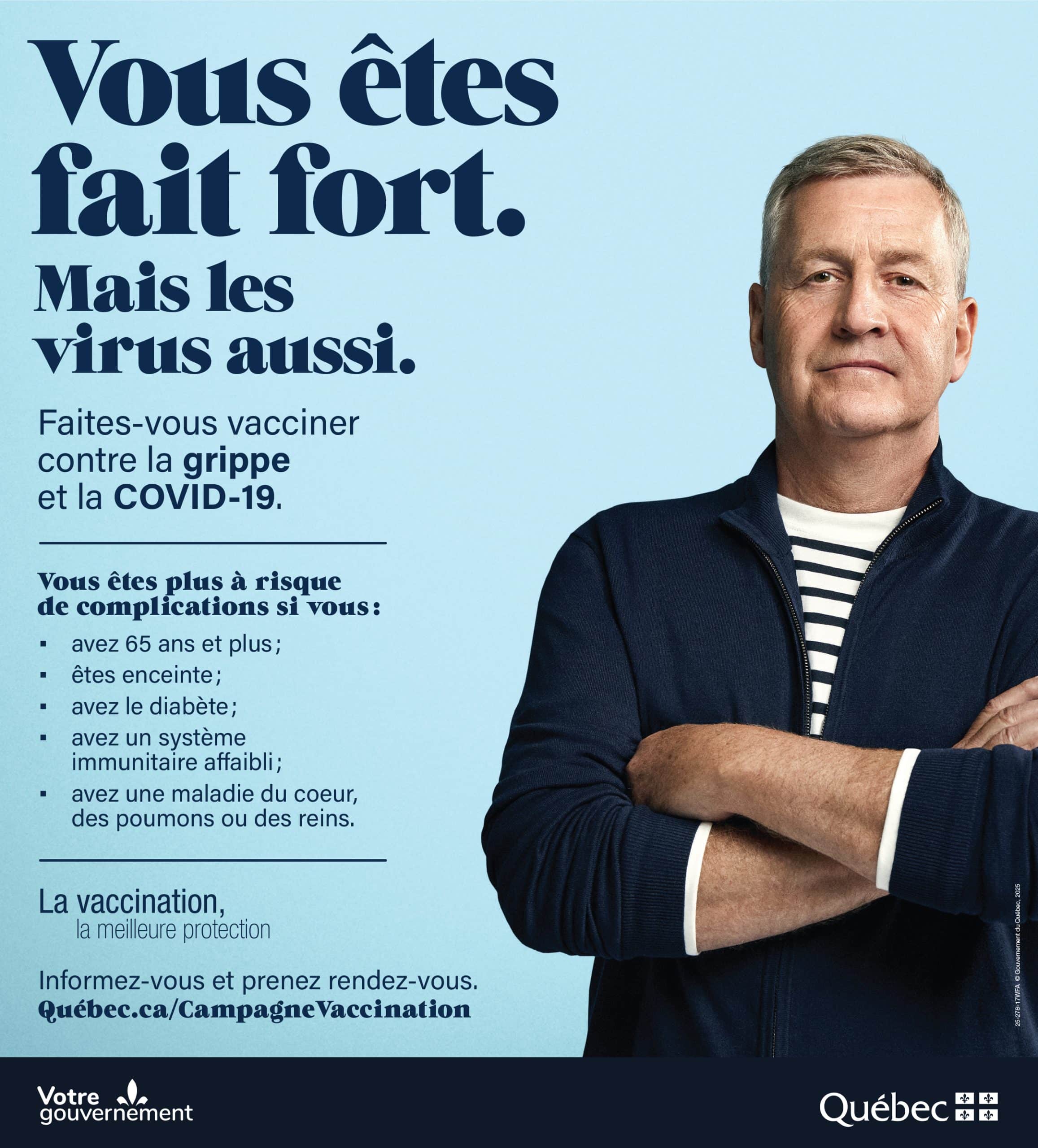 La Direction de santé publique des Laurentides encourage les personnes vulnérables à se faire vacciner contre la grippe (influenza) et la COVID-19 à l’approche de l’hiver.