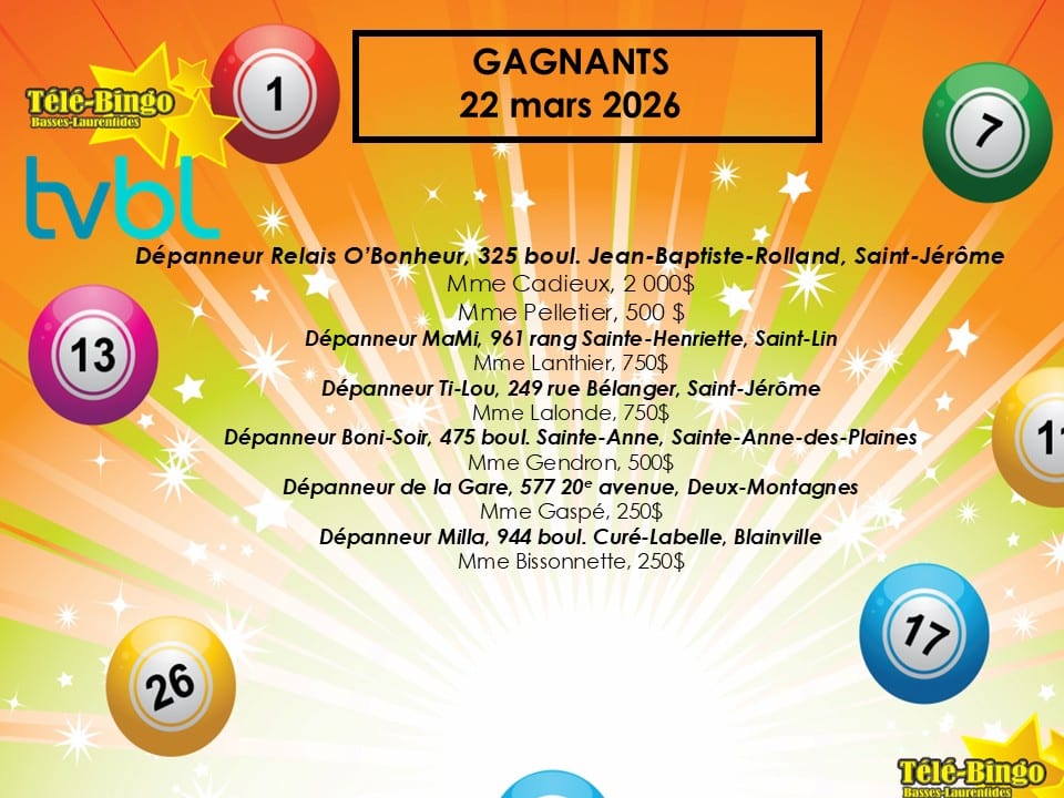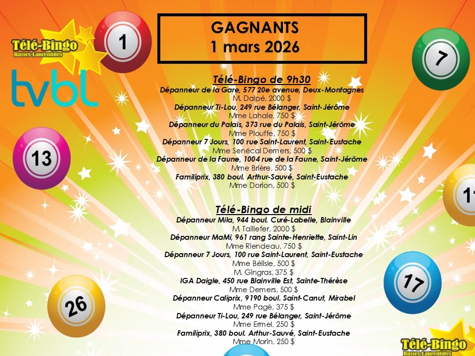 Votre animatrice Hélène Lavigne vous attend tous les dimanches matins dès 9h30 pour le Télé-Bingo des Basses-Laurentides. Au plaisir de jouez avec vous!