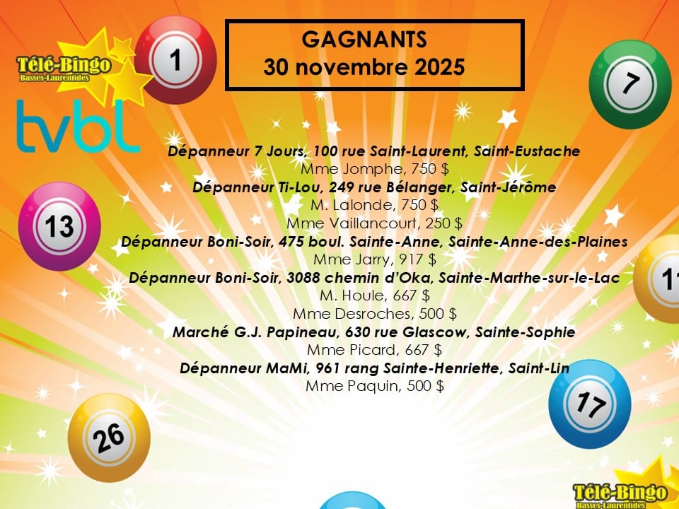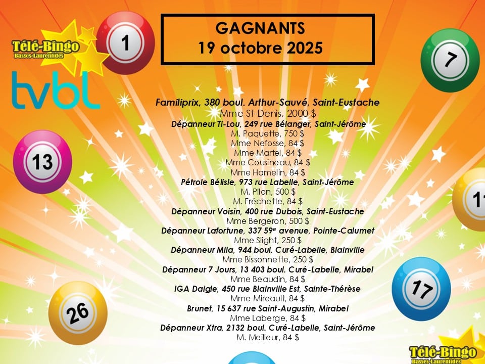 Votre animatrice Hélène Lavigne vous attend tous les dimanches matins dès 9h30 pour le Télé-Bingo des Basses-Laurentides. Au plaisir de jouez avec vous!